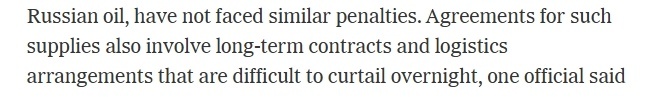 有印方官员日前对路透社表示,印度政府在购买俄罗斯石油问题上的立场并未改变,因为目前的印俄石油贸易多基于长期合同,“不是说停就能停的”。