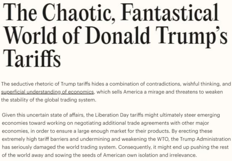 经济学家和舆论普遍认为,美国政府不仅严重低估了关税政策对美国企业和消费者的影响,还通过设立极高的关税壁垒严重损害了世界贸易体系。“这最终可能导致美国把世界其他地区推得离自己更远,为美国自身的孤立与边缘化埋下种子”。