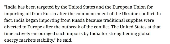 事实上,乌克兰危机全面升级后,面对美西方多次旨在扩大对俄能源禁运同盟圈的游说,印度始终没给面子。