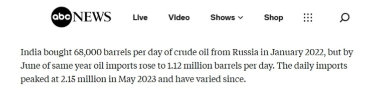 印度是全球第三大石油进口国和消费国,而俄罗斯是印度的主要石油供应国,约占其总供应量的35%。